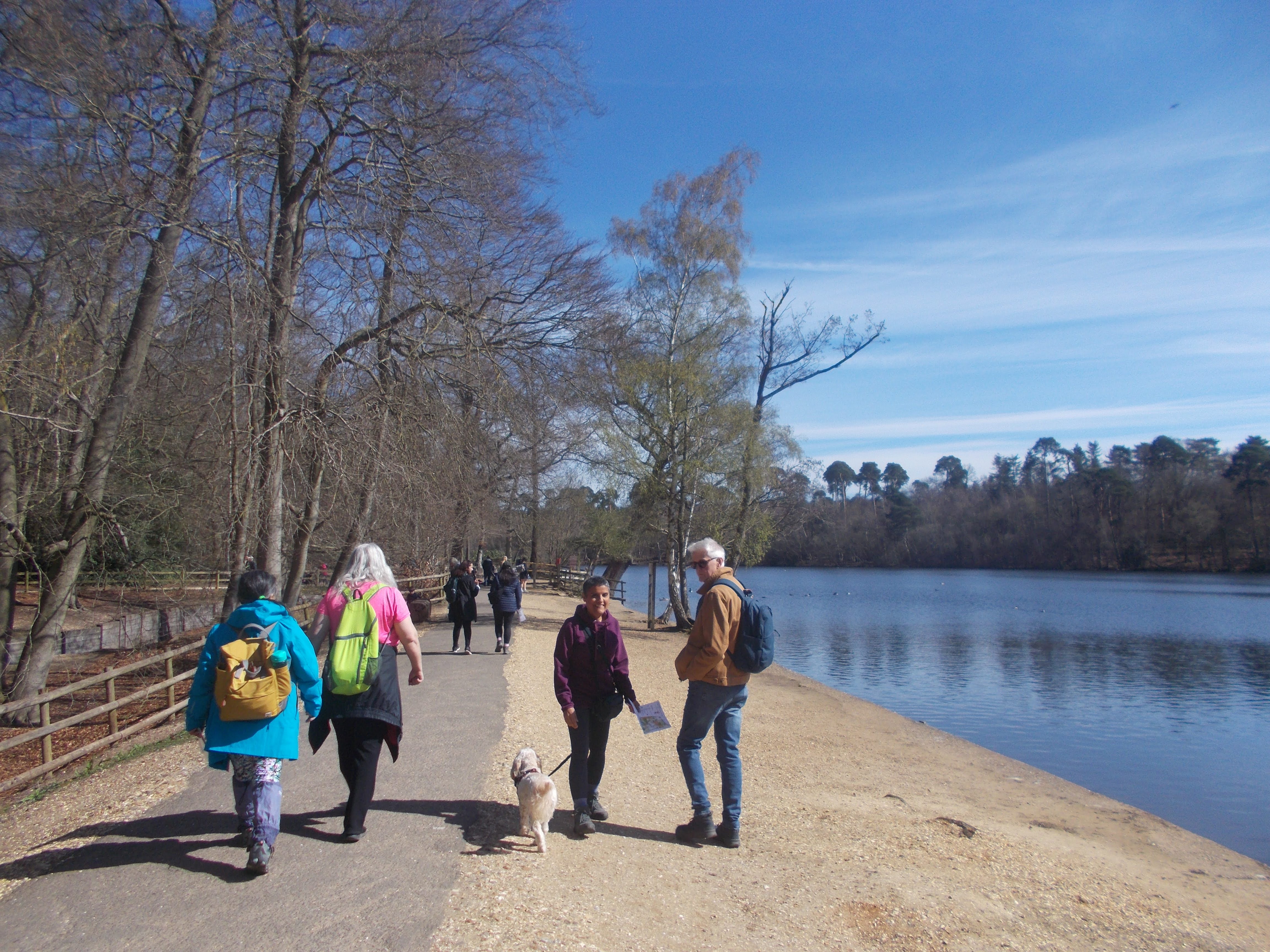 With a beautiful day forecast, an amazing 33 keen walkers, plus Gino the dog, met up by The Café in the Park at Rickmansworth Aquadrome for the 8-mile circular walk around South-West Hertfordshire and rural Harefield.