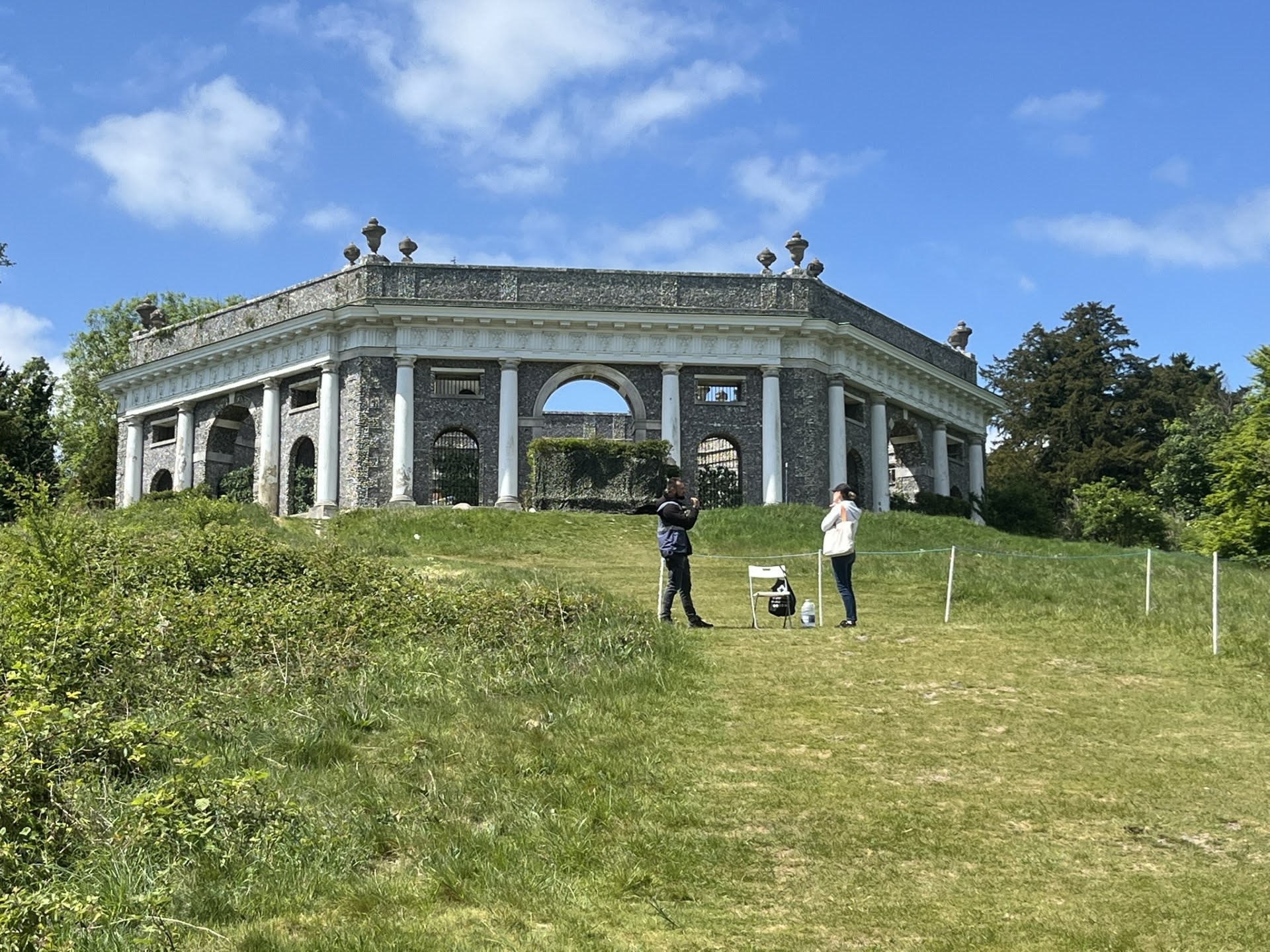 Picnic lunched, we headed down to Ham Common, and were surprised by 2 sizeable deer very close to the path, then round the back of Ham House and Ham Polo Club, to the first unexpected treat, the Hammerton Ferry ride across the river to Marble Hill. After a well-earnt coffee stop, the second unexpected treat, free entry to Marble Hill House, the last complete survivor of the elegant villas and gardens that bordered the Thames between Richmond and Hampton Court in the 18th century. And so, towpath back to Richmond Bridge past the old ice rink site, with surprising history and Belgian connection.