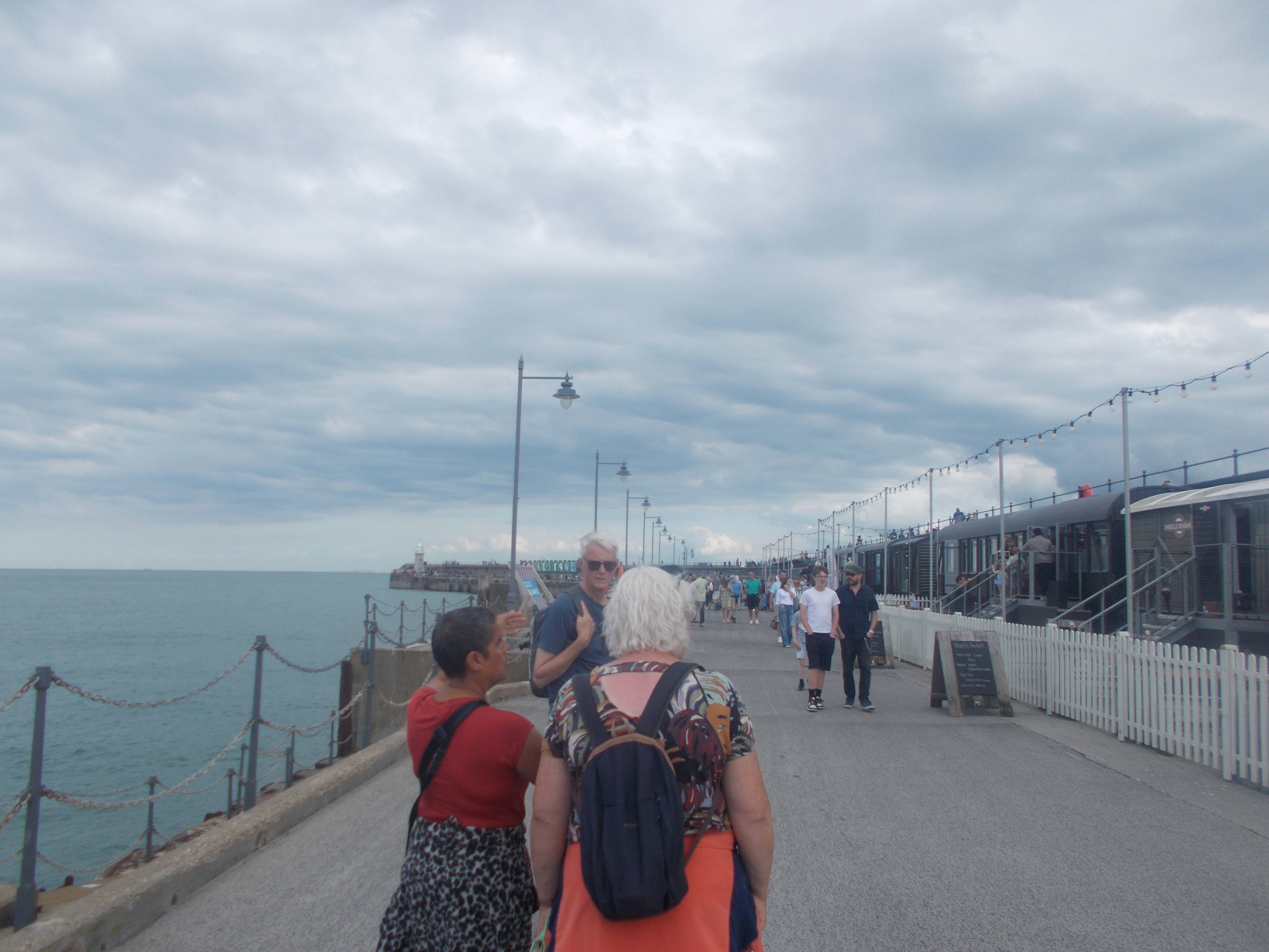 11 people were welcomed at Shoeburyness Station on a beautiful sunny day to start an adventure along the coast to Leigh to Sea. We saw the many fortifications of the naval base at Shoeburyness, now converted to apartments with sea views, and we discussed the history that developed to what it is now. We passed the nature reserves on the coast, home to many migrating birds, with lots of photos taken of the beautiful coastline. Then we arrived at Southend's 'Golden Mile' and pier after stopping on route for an ice cream break at the original Rossi's Ice Cream Shop, adults reverting to children enjoying the deli's ice cream. Some members spotted a driver in distress as their car had broken down in the middle of the road and went to their aid to help push the car to safety.