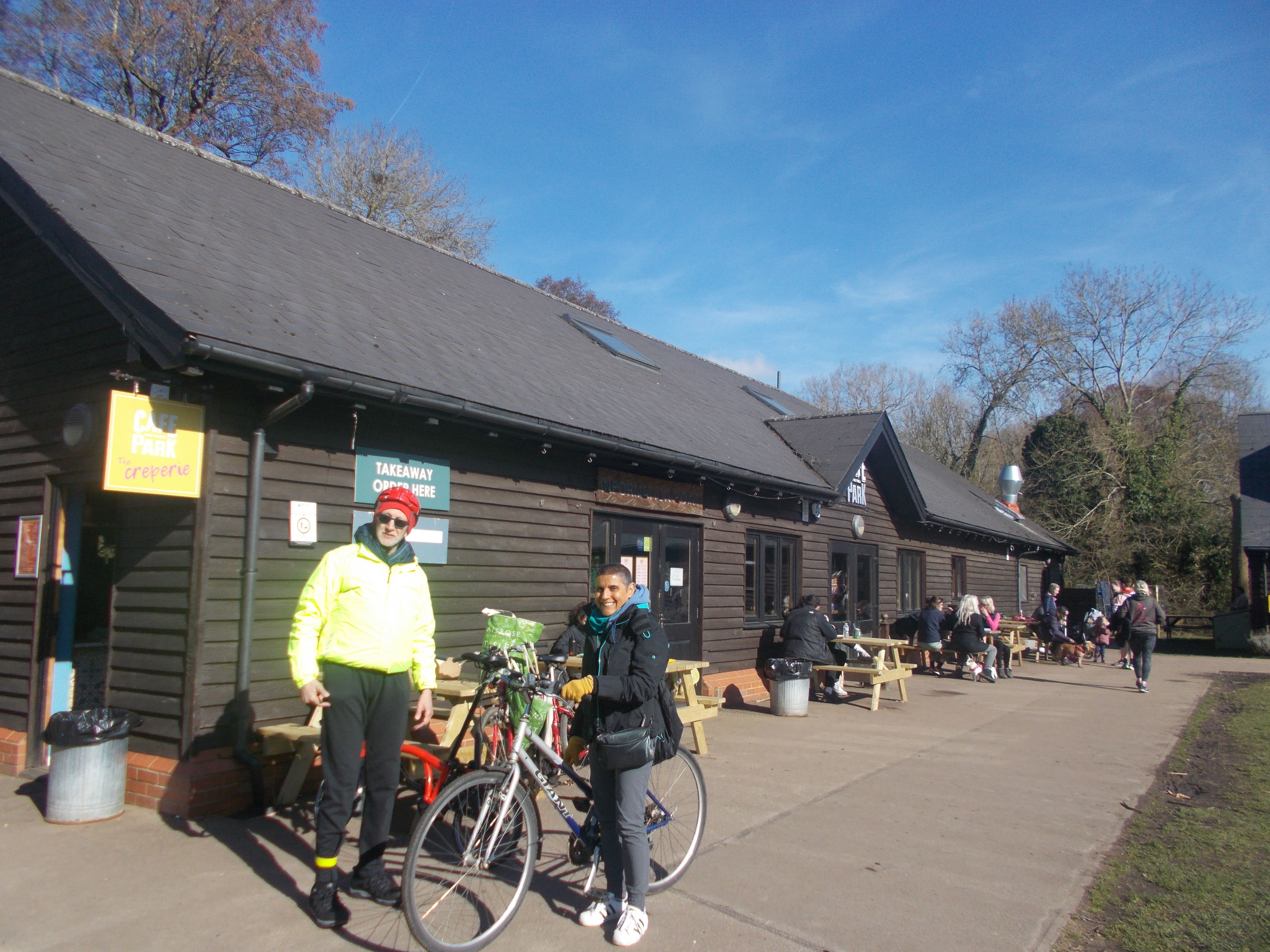On a bright cold morning we met at the Aquadrome café. Some had taken part in the Aquadrome parkrun earlier in the morning with anniversary cake handed out. After more jam doughnuts ("By Golly they're good" said Soraya), we set off. We cycled on route 6/61, perfect as traffic-free along the Ebury Way and the Watford - St Albans cycle way. Lots of skateboarders, BMX riders and scooter riders were whizzing around the purpose-made Oxhey Activity Park.