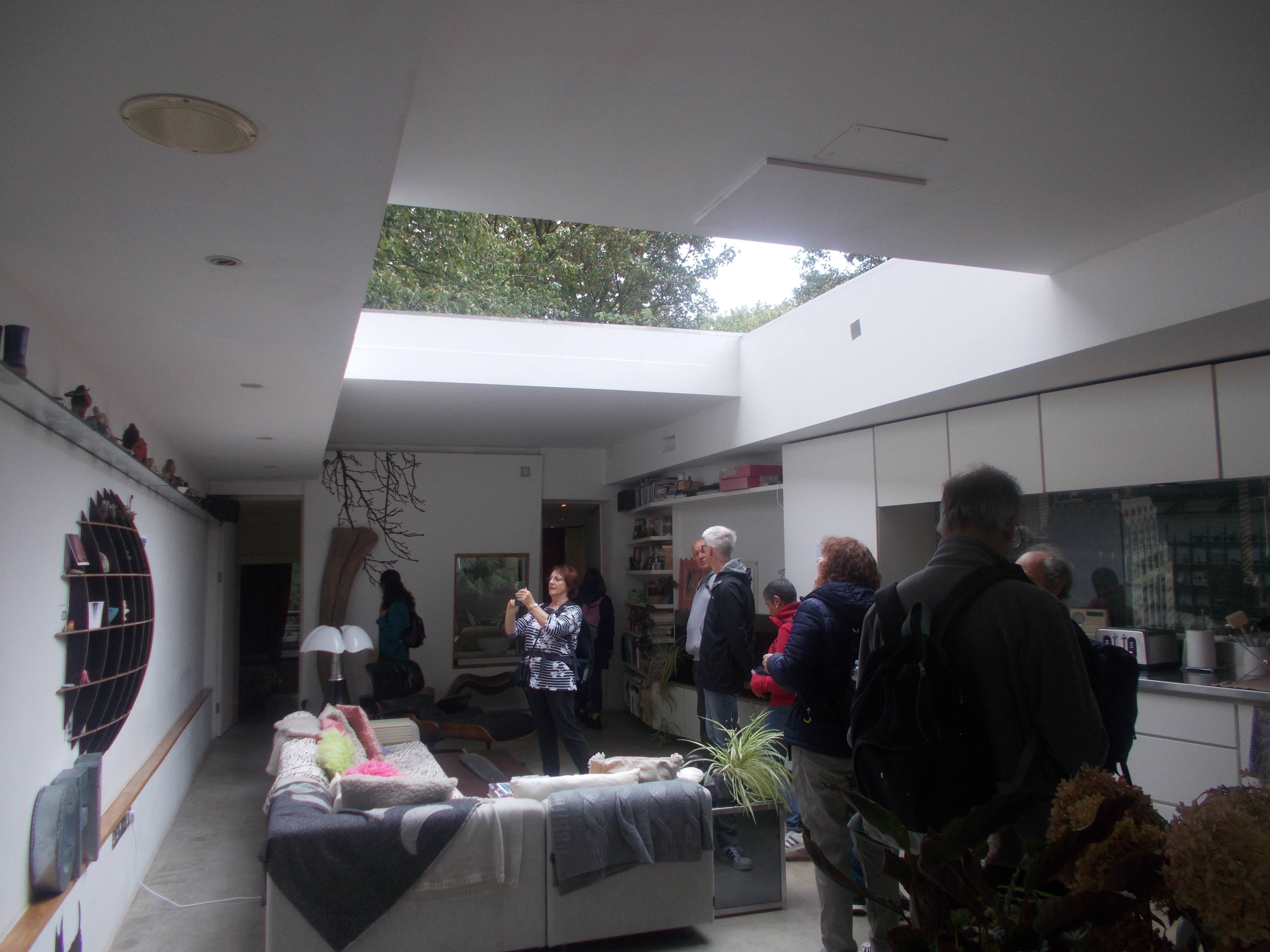 This year's annual Open House London event was on another sunny day where thirteen walkers met at Peckham Rye Station. Our walk was from Peckham to Crystal Palace via Dulwich. Open House London is the annual festival of heritage and architecture where many private buildings open their doors to the public. We first explored Peckham's mid-Victorian railway station, surrounded by dilapidated boarded up shops and graffiti. "It makes Feltham quite attractive" said Rob W. We then visited 15 and a half Consort Road: as featured in Grand Designs, the opening roof and sliding bed-bath typify this extraordinary response to constraints on a brownfield site. Then to Peckham Common and a fruitless pursuit of an Italian POW camp hut, before arriving at the Pear Tree House. An innovative creation built around a 100-year-old pear tree.