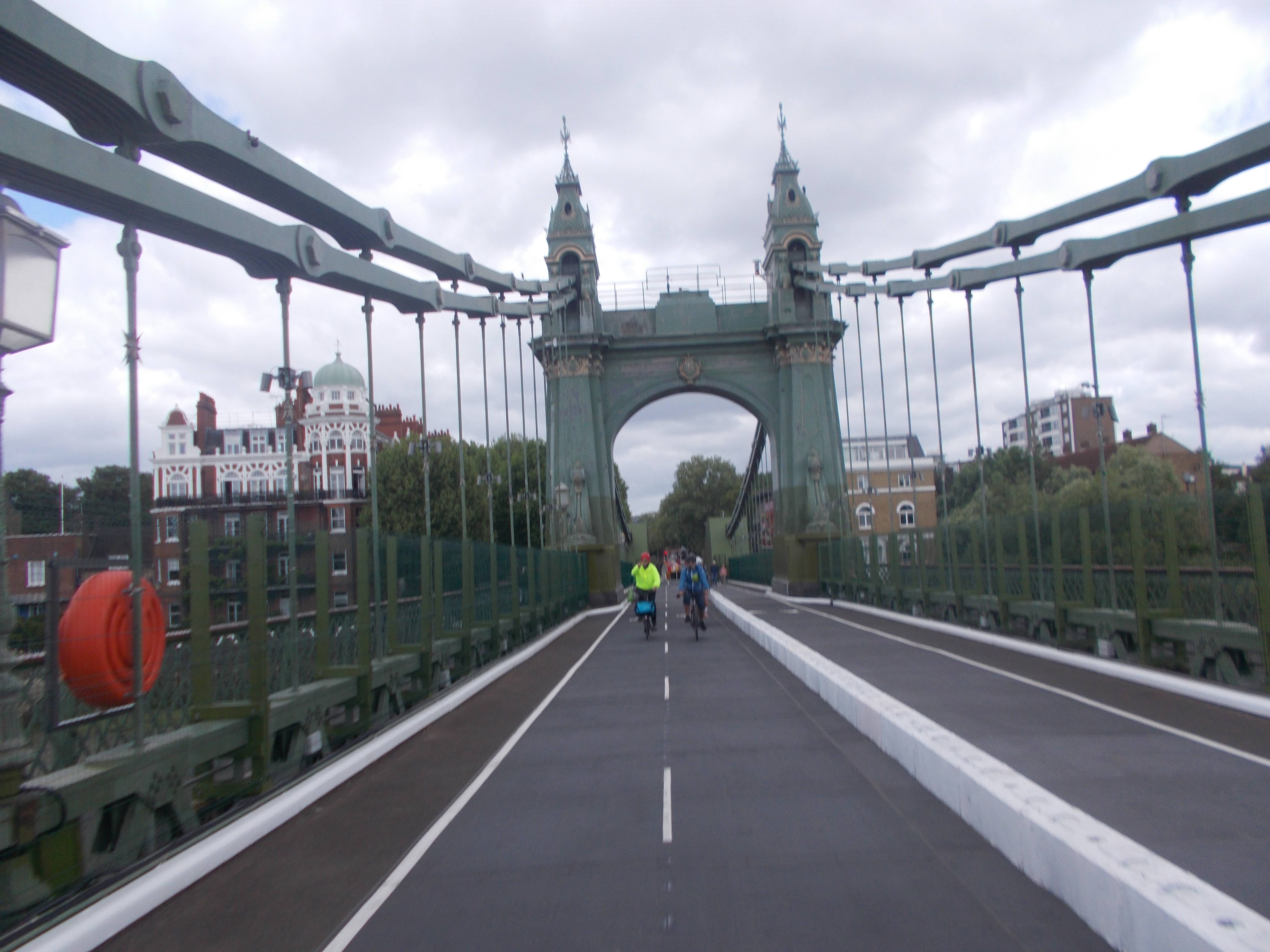 Four cyclists met on a sunny Sunday morning in Acton. Hiro had a very lightweight electric cycle, with Ian taking his trusty Brompton into all the cafes. We used traffic-free cycle lanes throughout the ride, firstly CS9 cycle superhighway through Chiswick and Hammersmith. Hammersmith Bridge has just reopened with a dedicated two-lane cycle path. We crossed the bridge to check out the views. Rumours circulate that Hammersmith Bridge will never reopen to vehicles so good news all round. We then joined the Thames Path and used another new section, the recently opened riverside path created as part of Fulham Football Club's new stadium stand. We had lunch in the Georgian and Tudor splendour of Fulham Palace, jam doughnuts for all.