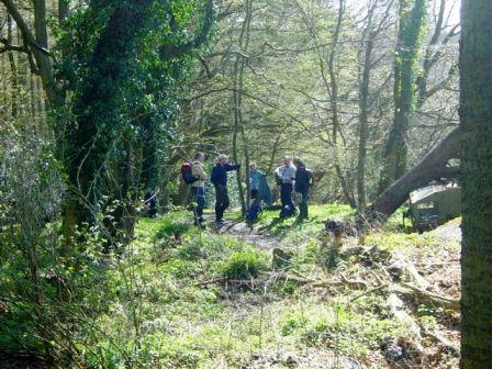 After lunch we visited the Ruislip Lido Woodlands Centre taking the opportunity to find out more about the area and also warm up. Walking past one of the capped bore holes we headed to the site of the Battle of Britain House hidden amongst the trees in Copse Wood. There we managed to locate a concrete staircase and compare it to a photograph taken in 1953. The American Secret Service trained agents at the house between 1940 - 1945 and on our way to Poor's field passed mounds of earth used as bullet traps. In Poor's field we found the foundations of an old stone cottage and successfully managed to identify a number of mushrooms including Fly Agaric and Parasol. Next we walked around the Lido and some of the more physically fit amongst us tried their hand at the assault course close to Ruislip Lido railway Woody Bay Station.