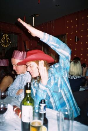 Saturday dawned bright and sunny. Eleven members sprang into action to capture the 9.10 train to Amberley, although Jeff sadly missed out on the reduced train ticket due to not being around for the headcount, and it being too early for Jan to count properly. A similar group of 11 members armed with children in buggies had a convoy around a 7mile route over the south downs, starting at a more civilised 10am. The Amberley route took in some stunning scenery and lasted about ten miles, ending at Arundel Castle - the planned route was originally 11.7miles but Brian used his joker card and without consultation bypassed the lunchtime pub break on the grounds that he didn't like the sound of the pub. He made up for his dictate by taking us to a lovely pub which served Badger (ale) by the river. A similarly delicious cream tea was provided by Belinda's, and Damien enjoyed initiation into the ritual of stuffing yourself silly with clotted cream. After a root around the castle, we pelted for the last train back to the hostel (Jeff arriving insouciant at the last minute) and to prepare for the Turkish Meal. To celebrate Pete D's birthday, eleven of us visited the Silk Road restaurant. We were treated by the sight of Pete showing an internationally renowned belly dancer how a real belly dance should be (twice). General cavorting took place afterwards to the sounds of the seventies all night long.