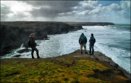 Ten went to Tintagel (Steve, Marcellus, Damian, Lenka, Colin, Diego, Rabia, Elen, Kate and Zhang) on Saturday morning to see the castle; not much viewing due to wind, and then walked to Boscastle. They followed a route east from Tintagel to Halgabron and then a path through woods following another river to a waterfall. Their path veered north over a curving landscape towards and past a number of farms until they reached Boscastle for a late lunch. They found the Wellington Hotel very hospitable, in particular Lenka was impressed at how real the fish she was served for lunch was, it took them a while to convince her to eat all of the head, apparently in the Czech Republic they serve fish headless as well as legless in pubs. Their route back to Tintagel was along the coast, the sign read 4.5 miles and they arrived back amongst the wind and sun in around 2 hours.