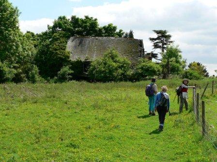 Following the path we continued to the Ten Acre field. Brian was asked how large the field was. Crossing through the field and back onto the footpath to Ten Acre Wood, a 19th century plantation of oak over hazel coppice. After ten acre wood we transferred to the Dog Rose Ramble past the West London Shooting Grounds. Being Sunday there was no shooting so there was no excitement at this point.