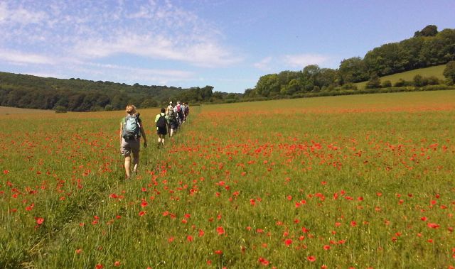 The walk passed (at a good pace) through all sorts of terrains, including a dash trough an overgrown cornfield, and the weather was pleasant - warm, some sunshine and only 10 minutes of drizzle to oblige us to check whether we had the right equipment with us. At lunch at Polesden Lacey we agreed that they installed the greatest invention of modern times, which happens to be English (but I will not bore you with details).