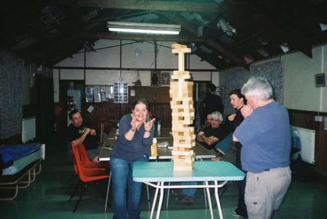 Martina was nominated Chef of the Month and cooked up a storm of meals on the Friday and Saturday night, which was very welcome as the nearest town was 1.5 miles away. Friday night brought opportunity to show driving skills (or lack of them in some cases) using Brian F's flying helicopter, held together with a bra underwire donated by the girls. Giant genga nearly broke the wooden floor. Complicated card games ended in tears for Steve T. Further kerfuffles surrounding sleeping arrangements which ended in a throughly modern co-ed dorm in the small outside Gingham Palace hut, where Jan managed to outsnore Humay, Mick and Mike.