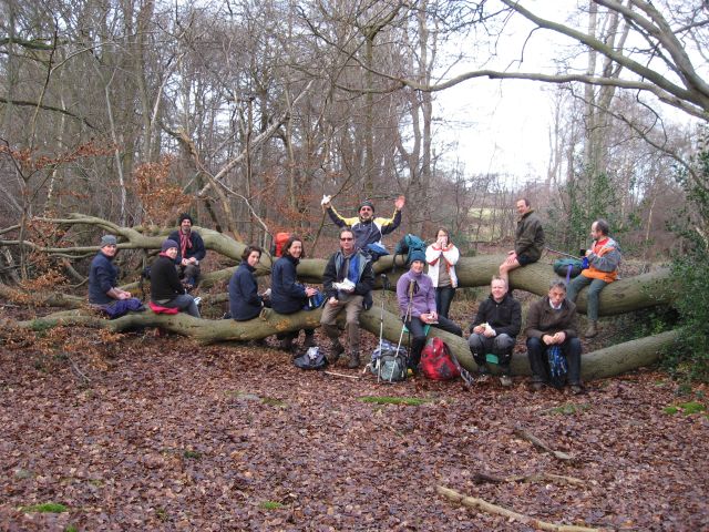 Nine of us found our way to Kensworth, west of Luton, on a ridiculously muddy but thankfully sunny day. Positively hurtling past Holywell, Jockey End and Gaddesden Row to Bridens Camp for a somewhat earlier than anticipated lunch stop, we enjoyed our pre-ordered meals in the outdoor Hikers suite of the Crown and Sceptre pub. Complete with separate toilet and bar (sadly without our very own bar staff) we tucked into Sunday roasts and talk soon turned to lack of chocolate bars in pubs (missing a trick there) and changes in the law with regards to stalking.