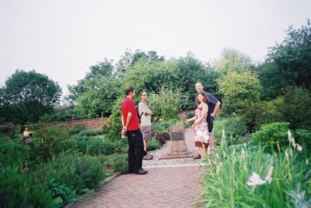 We then had our picnic lunch next to the Japanese water gardens where Jan produced her huge Herman the German fruit cake. After the cake Vic led us into the maze where we lost Jeff and Harpreet and eventually found David in the middle as he was signalling the route via his extended aerial to everyone lost in the maze. On escaping from the maze Peter led us with commentary through the Profumo sights, the fountain, swimming pool and hidden pavilion. Dusk was approaching but, as planned, we had time to make it to the excellent orangery tea rooms. Nancy A could not make it, however Jane came to the rescue and kept up the cake theme by giving everyone jubilee-wrapped portions of her splendid icing-covered fruit sponge cake.