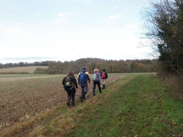 We had a lengthy stop at The Fox and Hounds where some of us sat outside but others enjoyed the open fire inside. After leaving Christmas Common we walked through Queen's Wood heading south-east to Turville Park Farm. It was open countryside here taking us up to Turville Heath and we then headed north back to Ibstone. We finished at about 4.15 pm and half of us went for tea in the Fox Country Inn. We completely missed the rain!