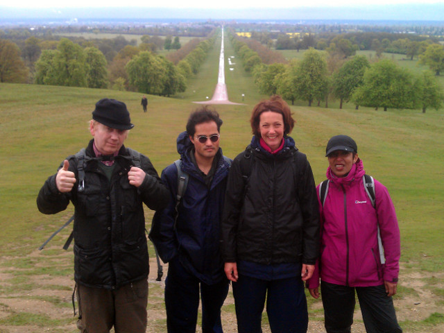 Unexpectedly, we arrived at Black Park early and were able to take a whole hour's lunch in the sun. We aimed to return by dusk, and our pace did not slacken on the way back. Marin took a group photo at the Avenue of Friendship (ah) in Langley Park, and suggested it was akin to a glasnost-type road you might find just south of the Kremlin.