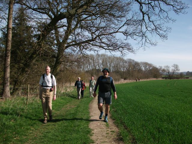 Ten of us set out on a fresh spring morning. All arrived on time, even though BST meant missing an hour in bed! We headed north out of Watlington, briefly following the Ridgeway. Then slightly eastward passing through Lewknor and on to open countryside. Dave went a little astray, but thanks to the wonders of modern technology (his whistle), we were reunited. This was perfect walking weather, warm and sunny with blue skies and a gentle breeze to cool us down.