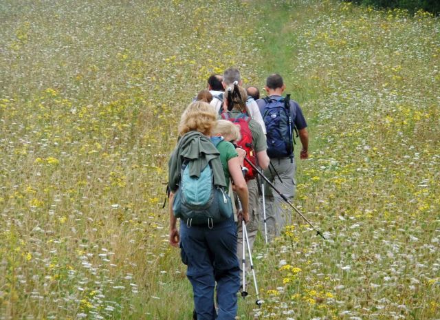 Bluebells and happy walkers - Photo by Marin