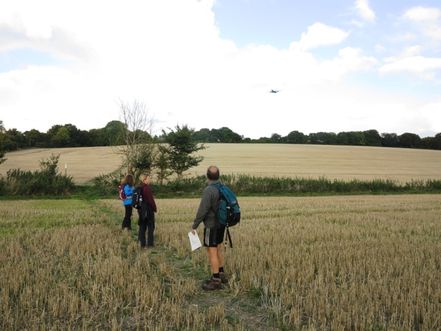We had a warm morning with broken cloud and blue skies. The initial pace was quite brisk to make up for a slightly late start time. We headed north up to the Ivinghoe Hills and the Beacon. Resting briefly at the Beacon to take in the view and enjoy the marvel of model aeroplanes and kites which were wizzing around the sky. Leaving the hills, we went directly down from the monument to meet the Two Ridges Link, which connects the old Ridgeway with a newer bit to the north west. Passing through Ivinghoe Aston and then out into open countryside we found an abundance of crops all around us, broad beans nearly ready for harvest and wheat crops turning gold. In no time at all we found ourselves at the lunch stop in a pleasant village called Slapton. To our surprise, the churchyard was a hive of activity, there was a fundraising event to replace the church bells. The sign on the gate announced cream teas and all manner of delights.