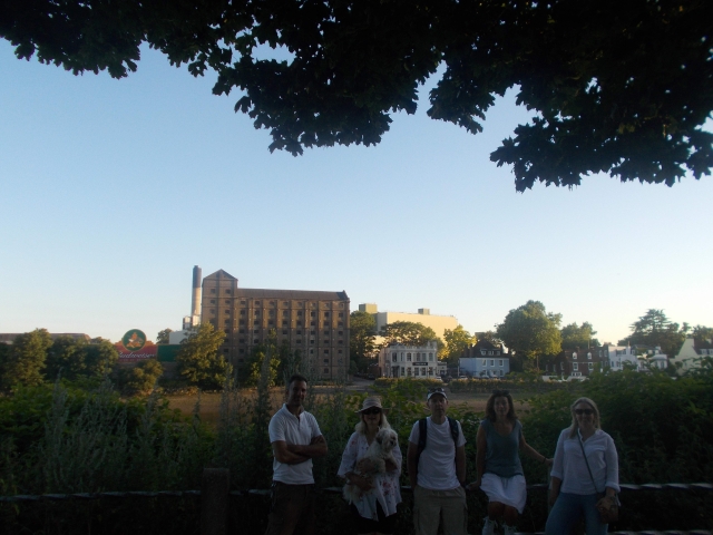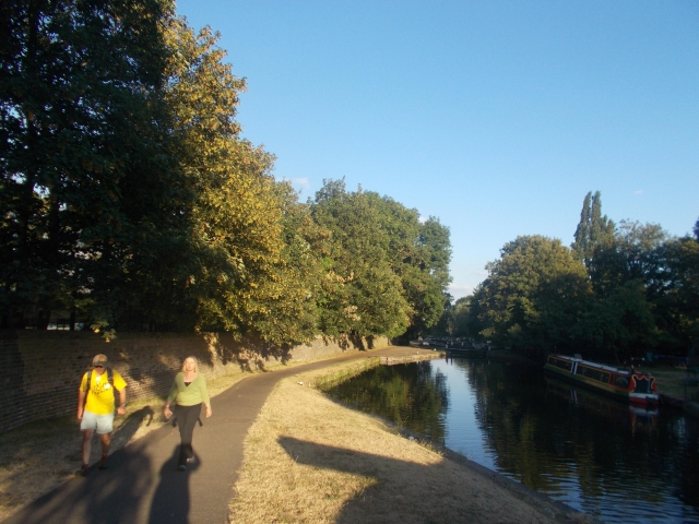 On our final evening walk of the season we had Kerry, Nick, Rachael, Derek and Diane (plus Jockey, Ellie and Bobbie) on our easy 3 mile walk around the canals and parks surrounding Uxbridge. After crossing Fassnidge P we joined the canal, admired the many narrowboats and houseboats along this section. As it was a clear evening we reached the end point just as the sun was setting over the canal. We had some welcome drinks at the General Elliot canalside gardens as we listed to the live music from the open mic sessions inside.