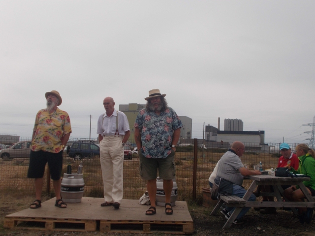 Sunday brought a different world. 12 brave cyclists managed the Rodwell Trail until a sudden gust blew Bev nearly over the bridge to the Isle of Wight. The hardy ones continued up the hill to the Olympic Rings and magnificent view over 19 miles of Chesil beach. Chris and Paul, Archie and Ollie, Liane and Brian managed to keep up with Rob C, designated sheepdog herding up the stragglers on the wind-blown bikes all over the island. We were met by campers and the reappearing Mike S who had a day trip over to Portland and the museum. The festivities continued in Sandra and Rob's adopted new pub and Jan, Humay and Liane showed the locals how we dance in London Town.