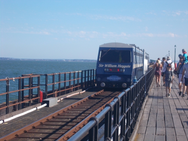 Our route was then along tracks to the beach resort of Leigh on Sea. This is one of the hidden delights of Essex. We enjoyed some cooling ice creams on the quayside, watching the Mods arrive on their Vespas and the boats drift by. Then eastwards on the cycle track on the beach promenade through Chadwell, Westcliff and finally to Southend on Sea. Every beach side café was advertising award-winning fish and chips so we gladly took advantage of this before the final expedition along the "longest pier in the world" for views across the sea on another scorchio afternoon in Essex.