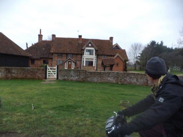The route was very muddy and waterlogged in places. We headed south to the River Thames at Mill End, where we crossed the river at the weir, this is quite an interesting feature and worth a look when there has been a lot of rain. Henley soon appeared as we made light work of the two mile stretch of the river. We stopped briefly at Starbucks. As mentioned, the dodgy lock on the toilet door was our greatest challenge of the day. We then headed west through Henley (a lovely old market town, for those who have not been there). Beyond Henley we were out into proper countryside, with a nice gradient to get us warmed up and some gentle wooded sections. We turned north onto the Chiltern Way for a few miles and then came to Greys Court, a National Trust property. Steve had been this way before and guided us to a good spot to sit and eat lunch.