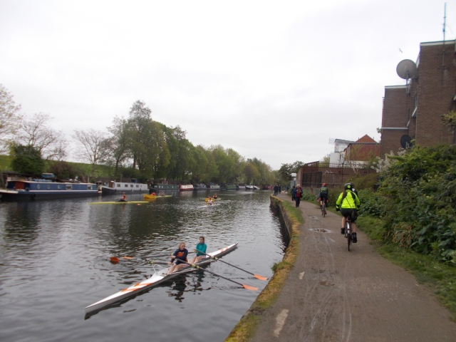 This was a very straightforward linear cycle ride from Ware in Herts to the Thames. After taking the train north from Liverpool Street we joined the canal at Ware and headed south on sustrans route number 1. Our first stop was the Tudor Rye House gatehouse, just before the Rye House Karting and Speedway Stadium which was a noisy interruption to the otherwise tranquil canal side scene. For much of the route the canal passes lakes, reservoirs and marshlands. Some Wherries from the Norfolk Broads were passed near Bromsgrove. We found an excellent community café for lunch by Tottenham Marshes. The Lea Regatta was taking place and the canal was full of rowers and crowds near Lea Bridge.