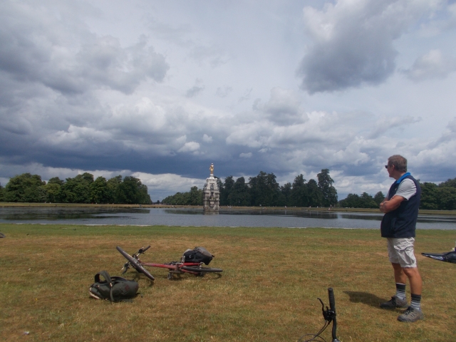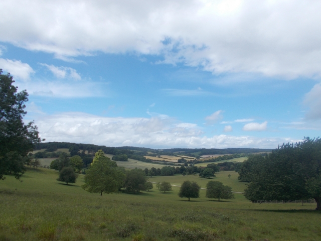 We met in the picturesque village of Hambleden. Brian was desperate to get back to the village by 4:00pm for a cup of tea so I made an executive decision and cut out the fields by heading straight into the woods. We made our way through groves of beech and climbed a hill to appreciate a glorious view of the Thames and Henley. We proceeded through mixed terrain of forest, field and classic Chilterns hills. The weather was forecast to be dry and was mostly fine but we were waylaid by occasional showers. Dan forgot to bring his rainwear but ploughed on without complaint. After a steep descent, we came to Stonor deer park. We settled on the hillside and enjoyed lunch overlooking the grand Stonor House with its own chapel and a backdrop of fine English countryside.