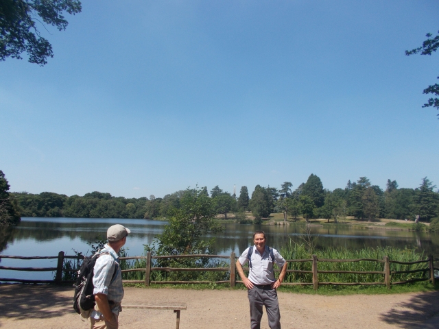Our walk continued around the lakes of Virginia Water, passing the obelisks and totem pole. We had our picnic by the lakeside with Rob P bringing out his supply of cold drinks thanks to flasks and cool bags. We then explored the Valley Gardens with its rich mix of trees and vegetation. As the afternoon temperature was well over 30 degrees our speed dropped, luckily more ice cream kiosks were around in the parklands. Our route back to Egham was a first time attempt via bridleways and footpaths which proved rewarding in terms of scenery and varied landscape.