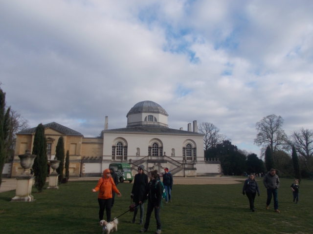 Our route followed the Thames through Strand on the Green, Chiswick Riverside and Dukes Meadow. In the parks and tree-lined lanes we took in the apple and cherry trees, their blossom vibrantly colourful. The magnolia trees were also in full bloom in many gardens in this quiet quarter of London. Carole took us on an unofficial circuit of Chiswick Marina "I know some of the yacht owners" to admire the impressive vessels moored there. At Dukes Meadow the lawns were full of picnickers and people playing sports. Our route then took in the Palladian wonders of Chiswick House landscaped gardens including camelias, very colourful in wooded glades.