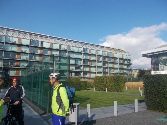 Nine cyclists met on a sunny bracing morning at Northala café. After bacon butties we set off along the Grand Union Canal eastwards. The canalside trees were still full of autumn colour and a heron was spotted within the barges. We crossed the aqueduct at Park Royal noting some anglers along the route. At Old Oak we cycled under the new conveyor belt bridge taking the spoil from the HS2 tunnels. From the bridge we took in the vast Old Oak Common site, the new HS2 and Crossrail stations still at foundation stage. We left the canal to do a tour of Wormwood Scrubs, the parkland covered with football pitches. Our coffee break was at the stadium where we met by chance the Ealing Cycle Group travelling east.