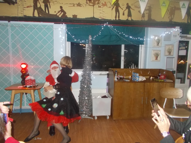 A band of 23 descended on YHA Holmbury St Mary Surrey Hills. Architect designed, purpose built, with funds from the Carnegie Trust, the hostel first opened on Monday 13 July 1935, celebrating 80 years of welcoming walkers and hostellers. We were glad to be the next generation of hostellers, and arrived in dribs and drabs at the hostel as the sun was setting. We started to decorate the hostel which was to be our home for the next 48 hours, with Christmas glitz. Anne started to mull the wine, and Nitty scrambled over tables and chairs to light up the room. The essential Christmas Quiz took place. After the inevitable cheating ('Chocolate? with your figure?'), we commenced pass the parcel with forfeits which also revealed peoples' sadistic streak. Dee managed to strut her stuff and Martina did a notable display of a pretzel.