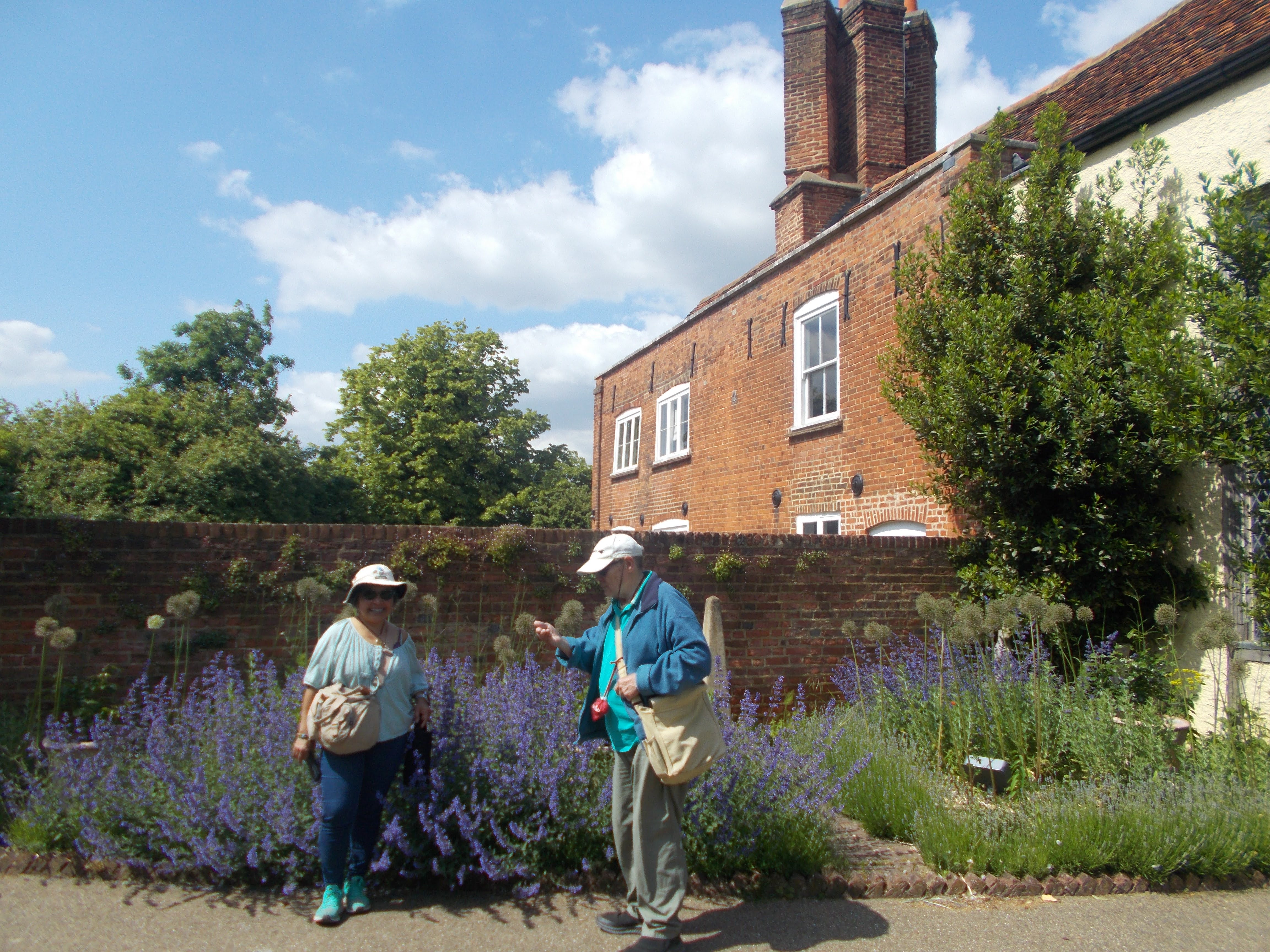 Saturday walk was to Grantchester along the Cam. We visited the medieval church where there was a display for the detective show. Ambling through the village we admired the thatched cottages before arriving at the orchard. The tearoom (with deckchairs under apple trees) was first made famous by Rupert Brooke and the Neo Pagans. Michael told us of Brooke's life there and his "The Soldier" poem which foreshadowed Brooke's own death in the near east during the Great War. After coffee and cake galore, we set off back to Cambridge. Sally attended a lacrosse match at Jesus College, where her son was playing for an Oxford college on a varsity match. We stopped for lunch in the centre, many checking out food stalls at the marketplace by the Senate House. We explored Pembroke College with its baroque chapel and expansive gardens. Then past the "Gate of Honour" and Trinity College. We climbed the bell tower of St Mary's the Great for great views of all the colleges. Afternoon teas at St Michaels Church, now a café, with some rather splendid chocolate cake. Some had a free visit to the candlelit choral evensong at Kings College Chapel. This is the late Gothic masterpiece of Cambridge, its 15th century fan vaulting the largest ever constructed. After another sumptuous meal arranged by Diane, we took over the hostel lounge for a debating session to the early hours. Nick and Janet had a lively discussion on diverse topics, Anne recounting her latest trek across the Atlas Mountains.