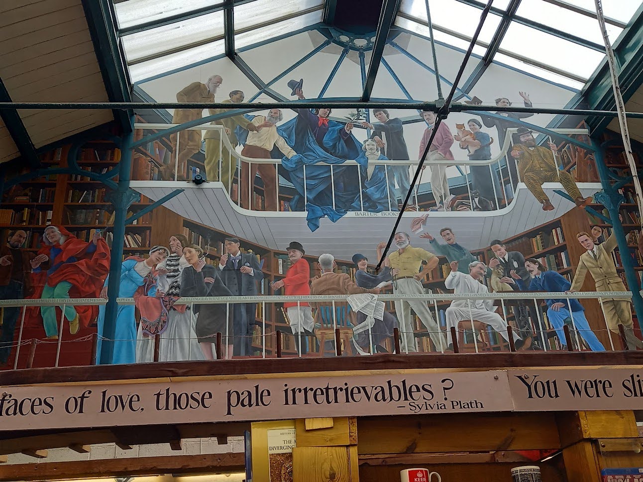 Our early autumn break took place in the Peak District National Park at the Derbyshire town of Hathersage. The EMR conductor (purple uniform matching the train livery) directed us to the Sheffield Tap to spend the time waiting for the connection. The Tap is a recreated Victorian station in the Grecian splendours of Sheffield Station, and we supped on some local brews admiring the fountains and steel artwork celebrating Sheffield industry. Twenty-two of us gathered in glorious sunshine at the hostel and set off on the afternoon Derwent Valley Walk. Sandra welcomed her friends Kevin and Isobel (locals and very enthusiastic hikers and climbers) as first surprise guests. We skipped over the stepping stones including one leap of faith over a gap. The route took in the meadows, criss-crossed by dry stone walls, sheep gambolling in the sunshine. Sally led us to the free drinks and nibbles at the village pub (Aperol Spritz promotion), before our sumptuous curry meal perfectly hosted by Diane as always.