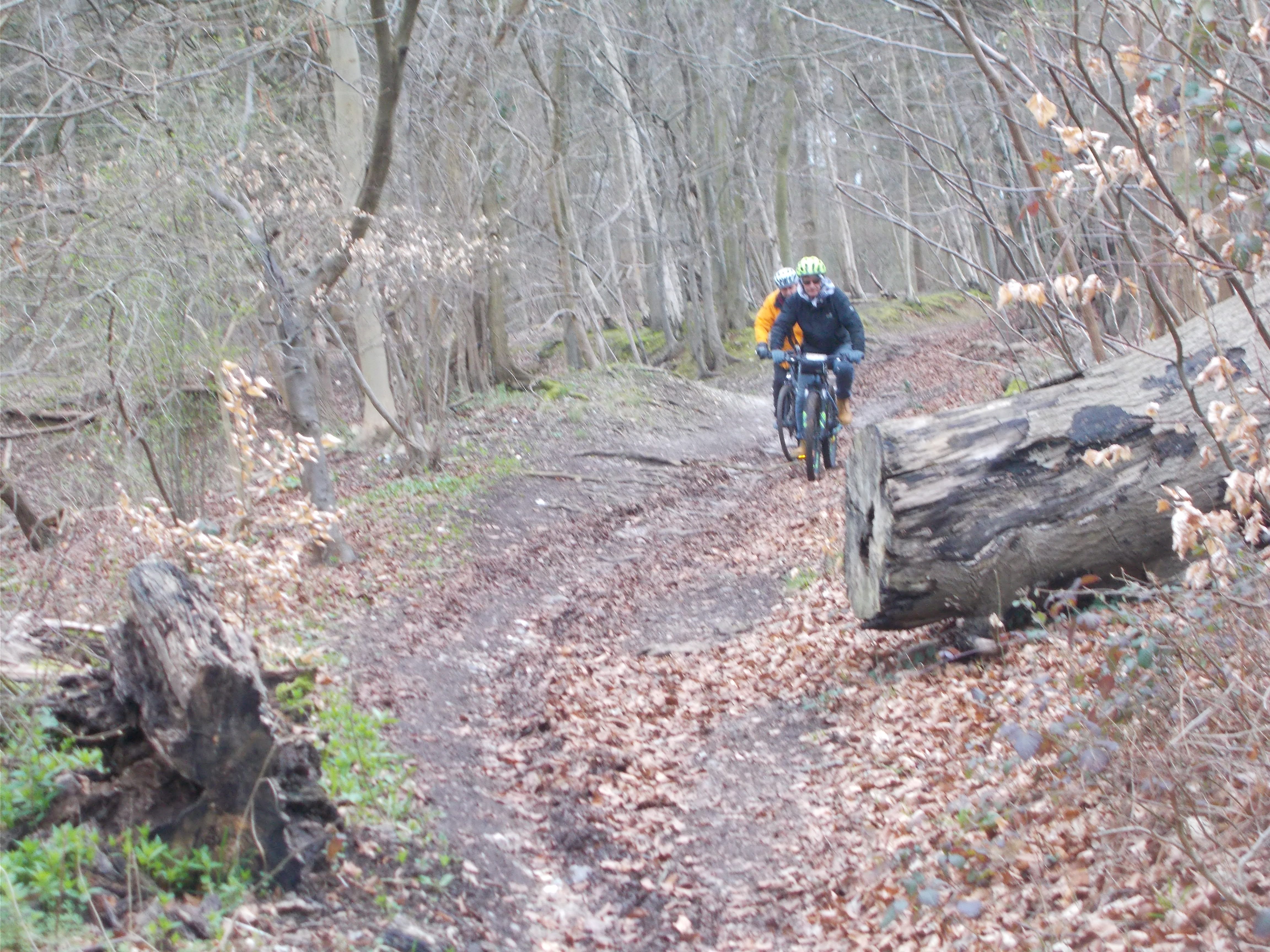 Five cyclists met at the Rusty Bike Cafandeacute; on a cold bright morning. After coffee and warming cheese toasties we set off on the Grand Union Canal. Nick G delayed arrival due to miscounting number of wheels required. Detour through Denham Country Park before cycling through the historic Denham village. Then to the aerodrome where a single engine plane descended over our heads. Then bridleways through the thick woodlands before descent to Chalfont St Peter village.