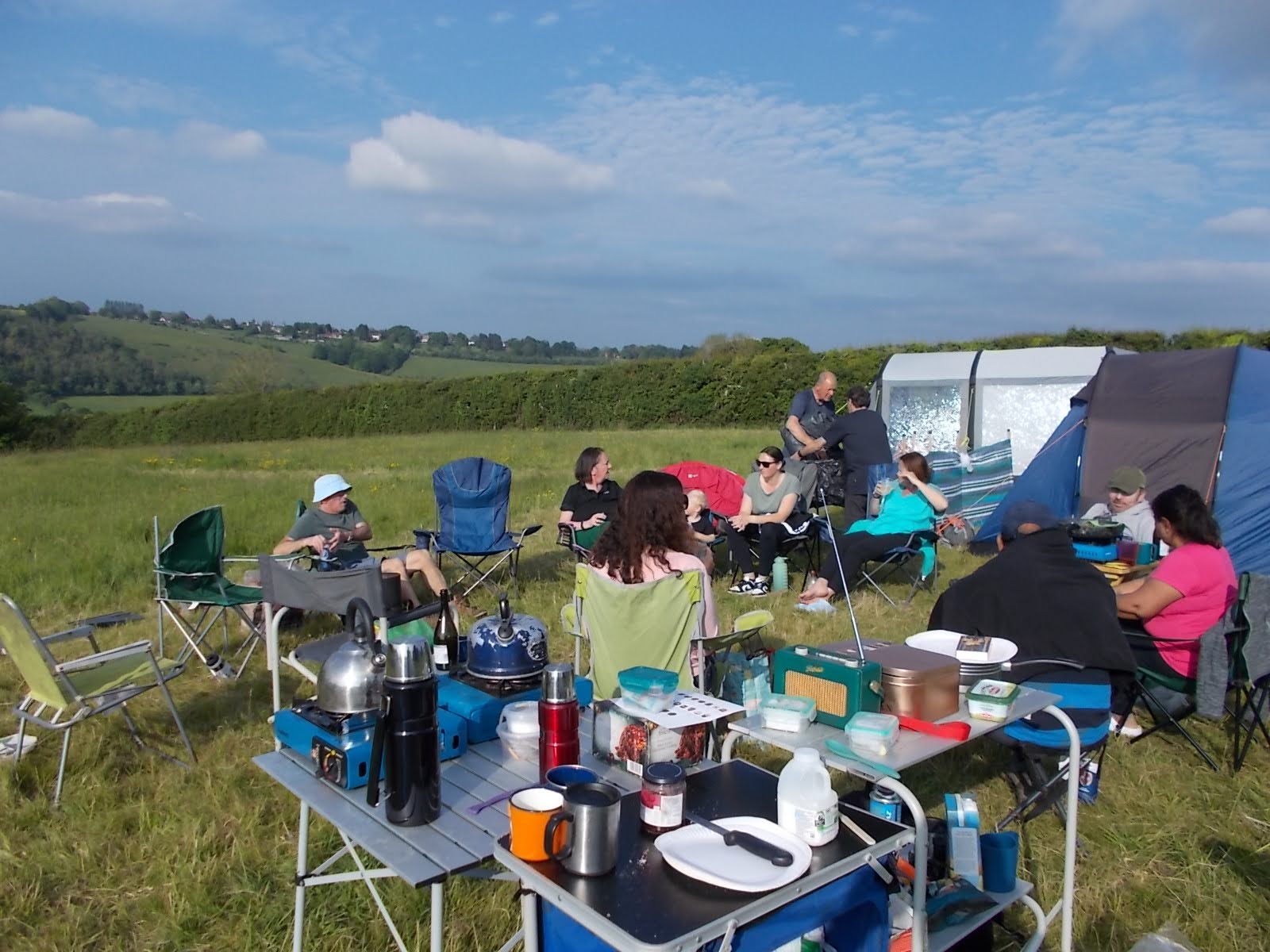 Saturday saw us enjoy glorious sunshine again with many breakfasting on the picnic tables in the garden. Louise and Kevin led the walk with the non-cyclists, following footpaths to Lavenham where they coincided with the cyclists. Twenty-two cyclists (using the unique offer of free cycles provided by the venue) set off on the 25-mile tour of the Suffolk Wool Towns. This region was the richest area of England in the era prior to the Industrial Revolution with its town and village parading its wealth with majestic churches and half-timbered manors. We stopped at Brent Eleigh, Preston St Mary before arriving at Lavenham, perhaps the finest Wool Town. It boasts of over 300 listed buildings, its half-timbered manors dating back to the 15th century. We had coffee at the marketplace and then explored the town including the guildhall and superb parish church. Our route continued, passing many thatched cottages painted in the mellow salmon pink of Suffolk. This region is perfect for cycling due to its gently undulating landscape and absence of traffic on the quiet country lanes. Suddenly one little chap had a mishap, and panicked before he heard a voice he recognised: "Jump up Dean, we'll soon be flying, I can go just as fast with two". Our next villages were Lindsey, Chelsworth and Monks Eligh with the highlight being the picture postcard village of Kersey. After climbing to the church on the hill we had well deserved drinks at the 15th century pub by the ford. Walkers and cyclists gathered back at Milden for some rather splendid Victoria Sponge, and lemon drizzle cupcakes (baked by Louise and Bodleian Nick). The table tennis tournament then began with Penny and Prem winning the trophy. The catering team (Pauline, Rachael, Louise, Soraya, Karen, Judith, Julia, and Anneke) prepared a sumptuous Mexican feast for all thirty guests at the Broder. Beef chili, refried beans, pesto vegetables and lashing of rice, salsa and tortillas. For dessert Juliet had prepared apple crumble. "I say it's awfully nice" said Natalie, tucking in. The entertainment upstairs was provided by Pauline (Tequila slammers), Mellow Mike (jazz set on the saxophone and clarinet, and Coogee (on the ukulele leading the singsong of the HAWOG song).