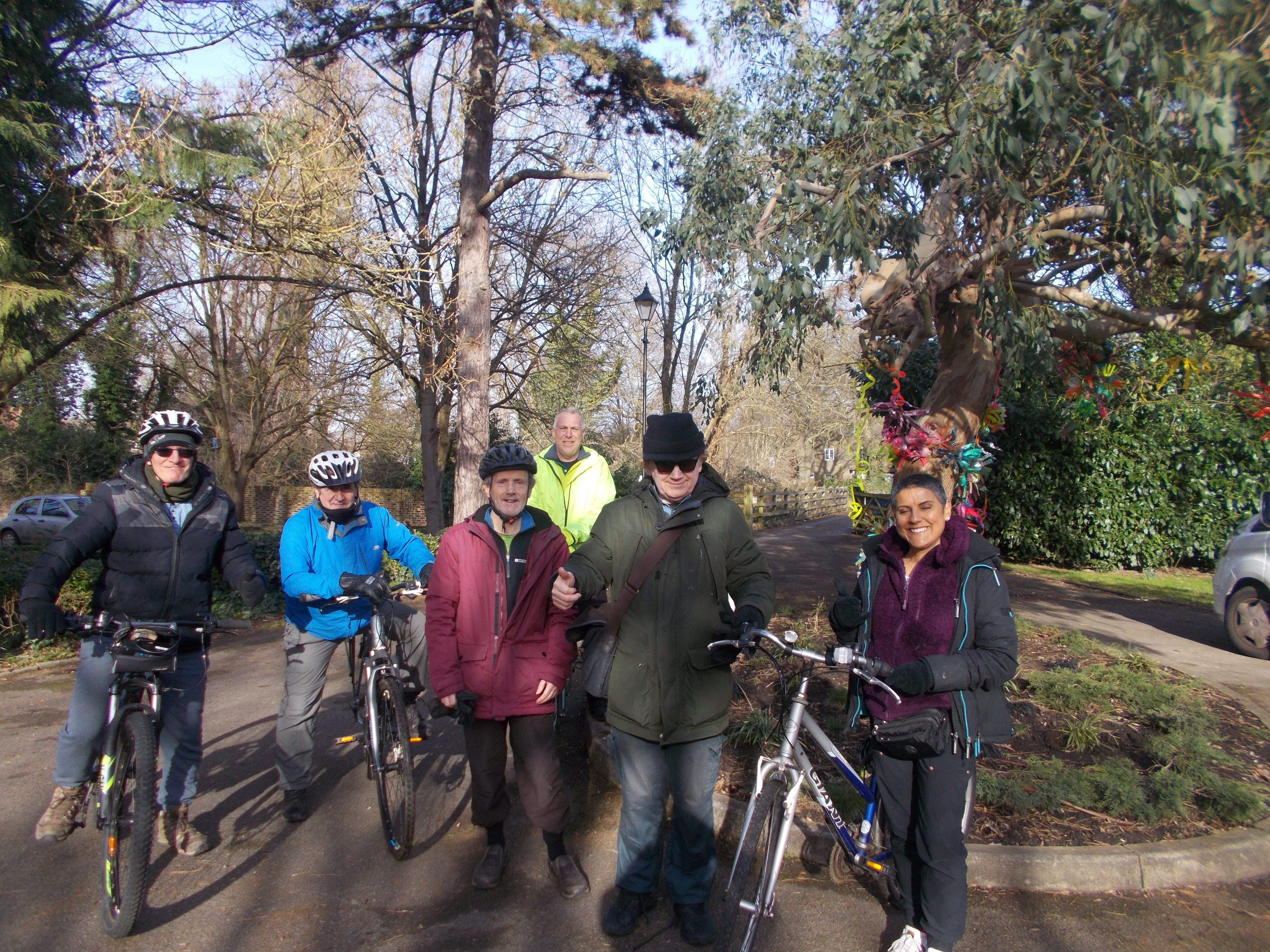 Our first cycle ride of the year was an easy 18-mile ride from Uxbridge taking in the villages of Colnbrook, Poyle, Longford, Harmondsworth, Sipson and Colne Valley through West Drayton. Six of us met at the always welcoming Rusty Bike Café at Fassnidge Park. Jeff and Soraya did an extra 10 miles due to engineering on the Metropolitan line. We followed the Grand Union Canal south with a detour to Little Britain lake and lots of mansions on the River Colne. Jeff then led us on a detour to the heritage area of Drayton Green with Georgian manor house, and old mill building on the River Colne. At Southlands Art Centre we took in the wassailing decorations on the eucalyptus tree after the recent folk ceremony. We continued on the Colne Valley cycle trail to the Colnbrook roadside transport café featured in several crime dramas including "Hell Drivers" and "Waking the Dead". Then to Colnbrook and a Sunday roast at the historic coaching inn of The Ostrich (founded in 1109) and acknowledged as the third oldest pub in England. Malcolm confessed he had another roast waiting for him at home and Nick departed early for the annual gathering of Southern Area survivors.