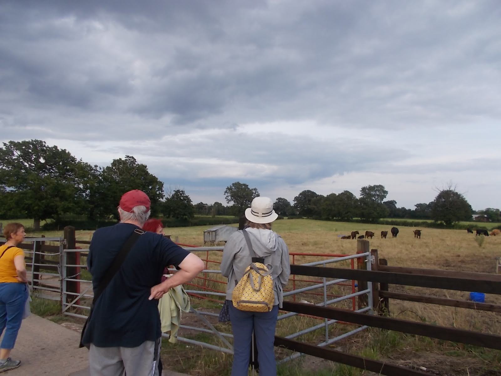 We sat outdoors, surrounded by fields of corn, and cows. We were welcomed by the owner, her husband and grandmother. We thoroughly enjoyed the fresh coffee, tea and home baked cakes. But we had to carry on, heading towards Woodcock Hill and White Hill. We stopped by the pond for a quick lunch stop, followed by a lovely walk through Moor Park, stopping to watch some golfers. We finally arrived at the White Bear for well-earned drinks, sitting outside in the sun and enjoying our cold drinks. The invisible man finally appeared. Some stayed longer and enjoyed a meal.